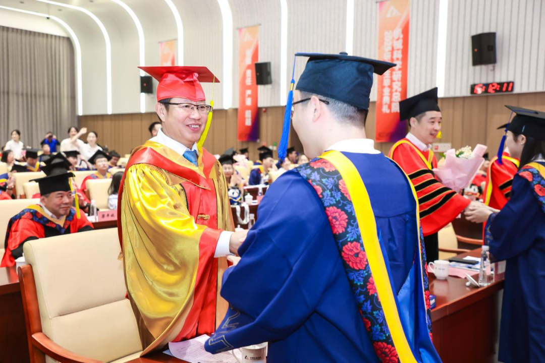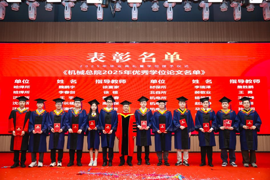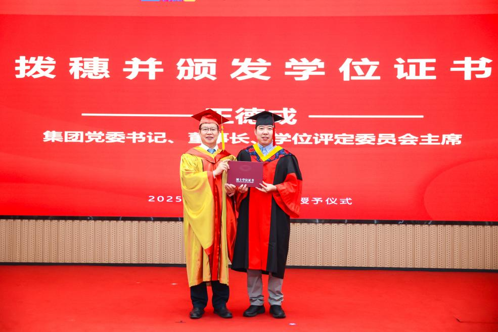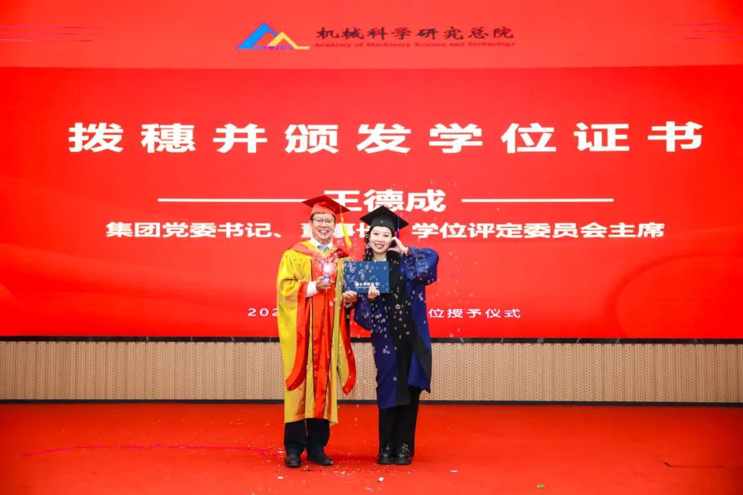 李愛國宣讀了《機械科學研究總院2025屆畢業(yè)生學位授予決定》,王德成為每位畢業(yè)生撥穗正冠并頒發(fā)學位證書。