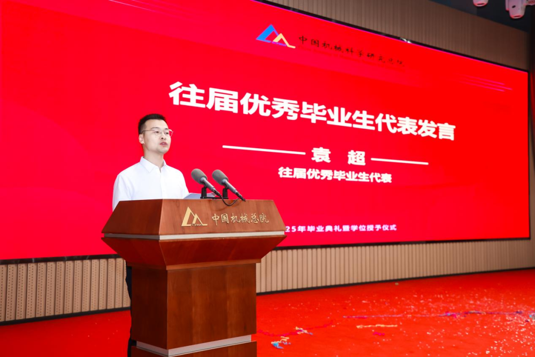 往屆優(yōu)秀畢業(yè)生代表袁超分享留院工作以來的科研經(jīng)歷與成長,鼓勵學弟學妹們“以‘敢為人先’為刃,在工業(yè)母機、工業(yè)軟件的賽道上破浪前行;以‘開拓創(chuàng)新’為炬,為中國制造業(yè)的高質(zhì)量發(fā)展點燃燎原星火?!?/p>