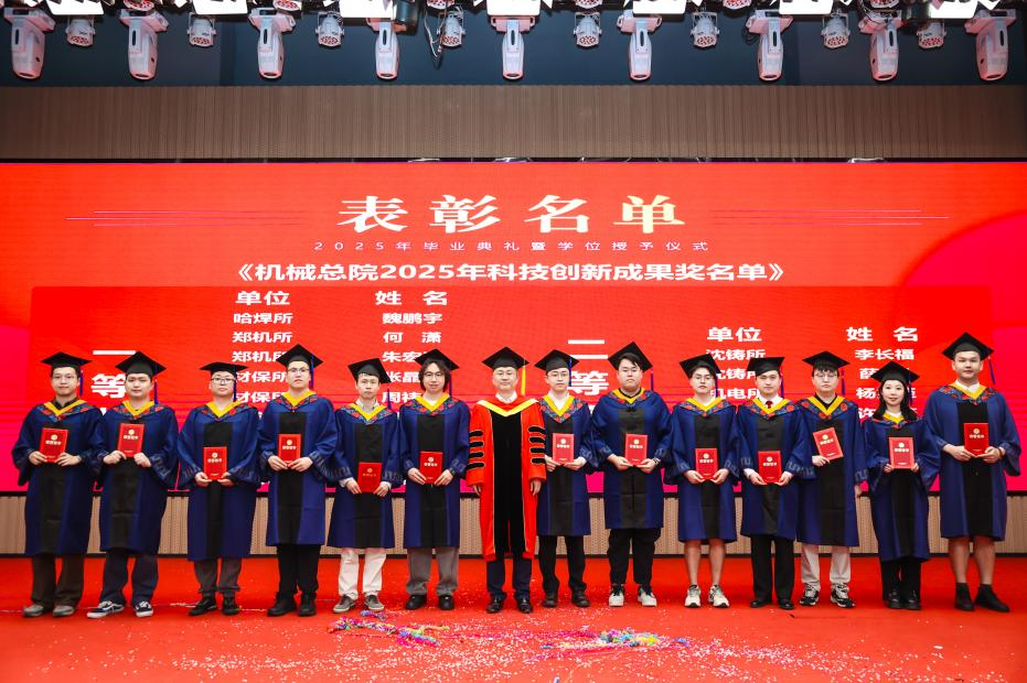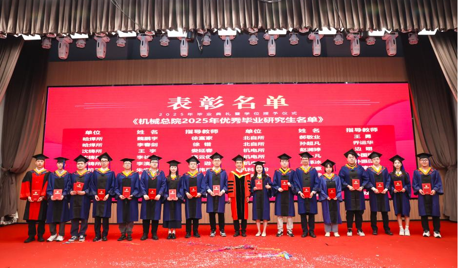 研究生院傾力打造的智慧課程虛擬AI助教“科小研同學”作為典禮第二主持人登上舞臺,現(xiàn)場宣讀了2025年北京市優(yōu)秀畢業(yè)研究生、機械總院優(yōu)秀畢業(yè)研究生、優(yōu)秀學位論文、科技創(chuàng)新成果獎獲得者名單,孟祥宇、李玉鑫、王宇、姜超分別向獲獎同學們頒發(fā)榮譽證書。