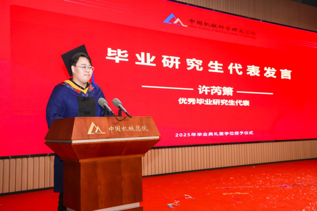 許芮簫作為優(yōu)秀畢業(yè)研究生分享了總院求學之路的成長與收獲,表達了對母校、導師、親人、同學和朋友的眷戀與感激,并滿懷信心地號召同學們勇挑時代大任,奮力書寫無愧于新時代的總院答卷。